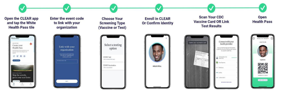 *All participants will need to use CLEAR Health Pass to provide proof of vaccination showing the final dose received at least two weeks prior to checking in at the event OR upload a clinician-administered negative PCR test taken within 72 hours of initial check-in. At-home tests will not be accepted. Vaccine verification can be uploaded at any time, but negative test results can only be uploaded 72 hours before the start of the event.